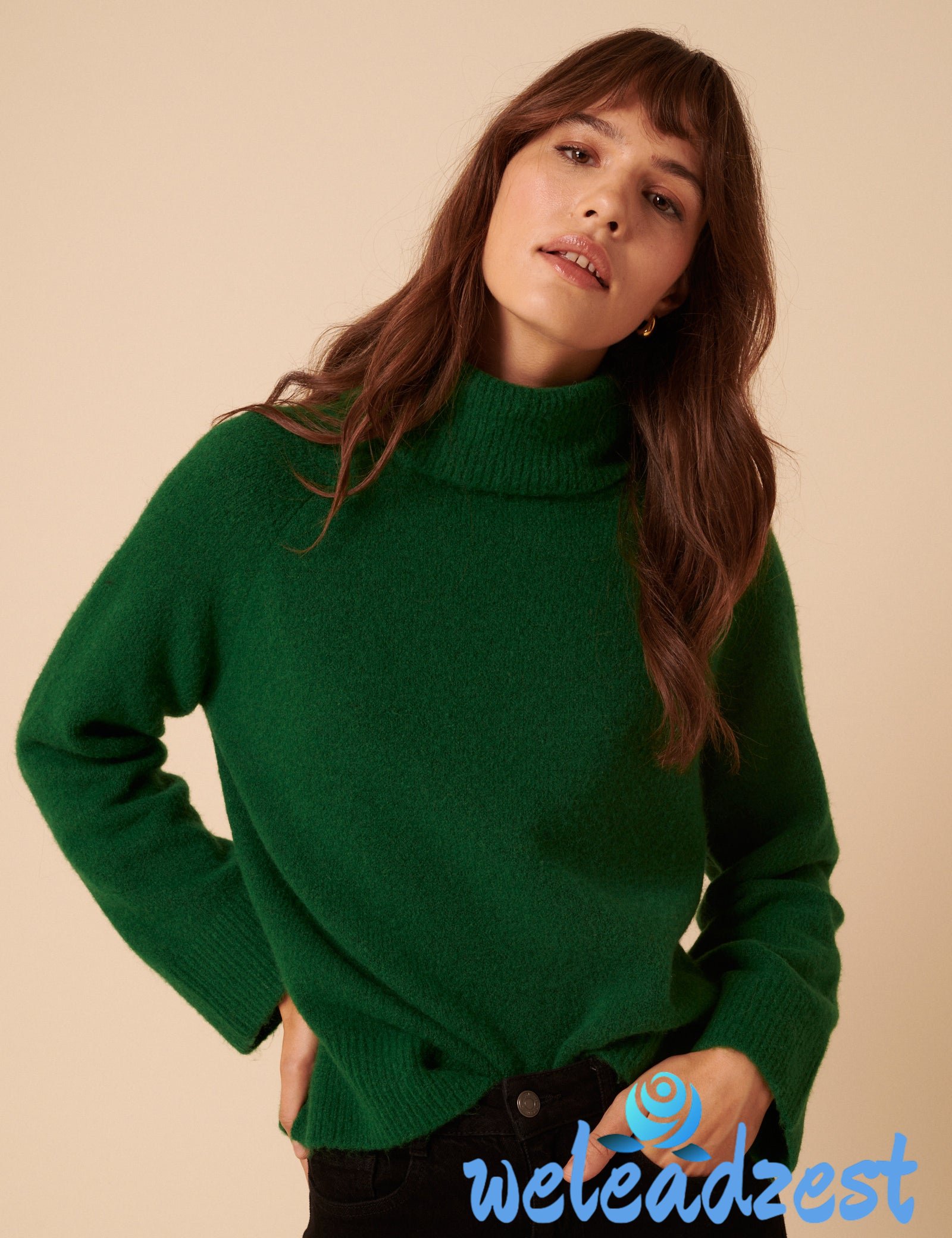 Forest Green Roll Neck Relaxed Knitted Jumper