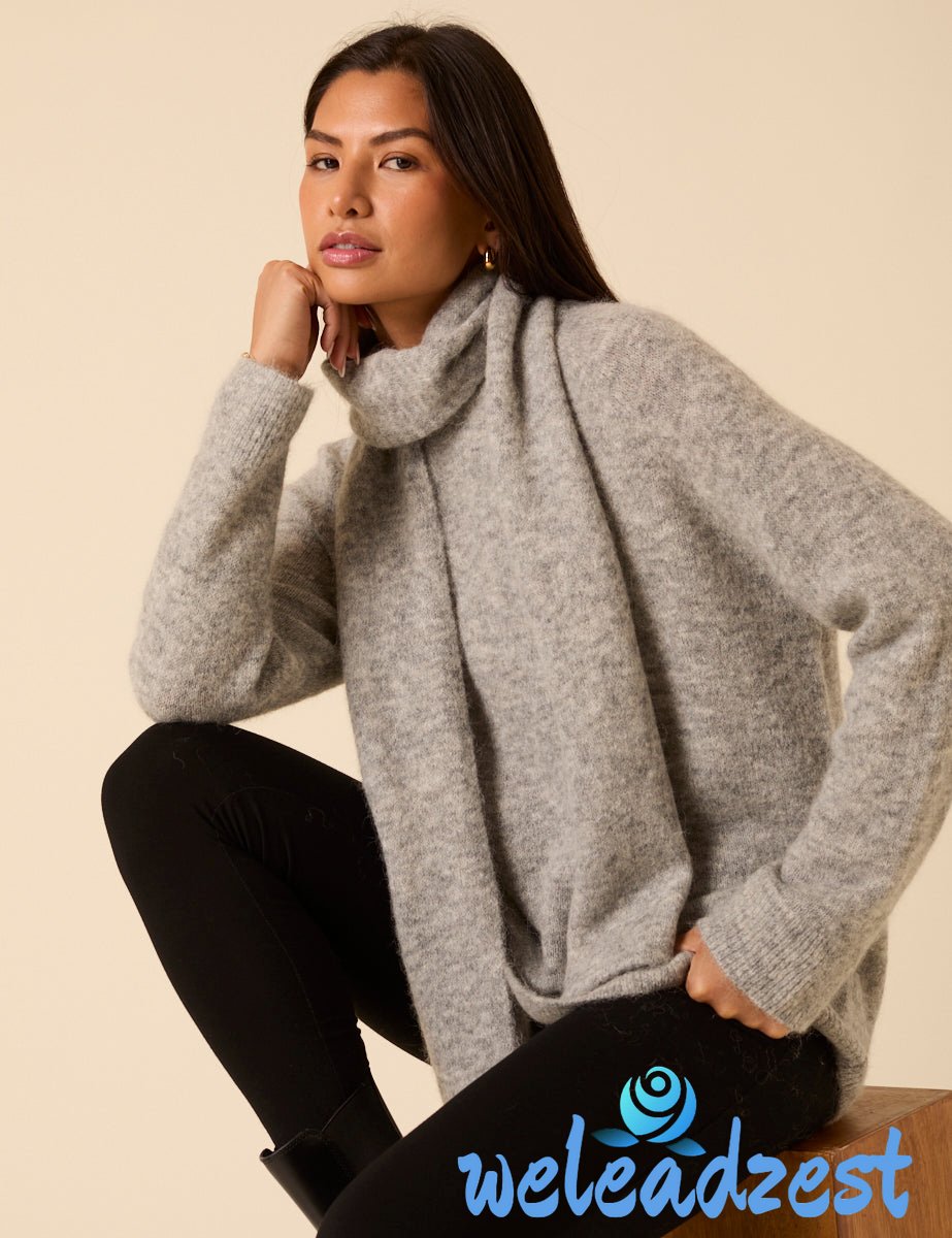 Grey Oversized Scarf Jumper