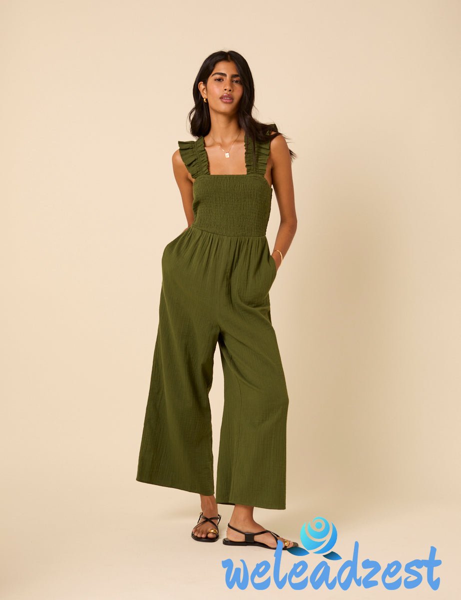 Khaki Cropped Length Maya Jumpsuit